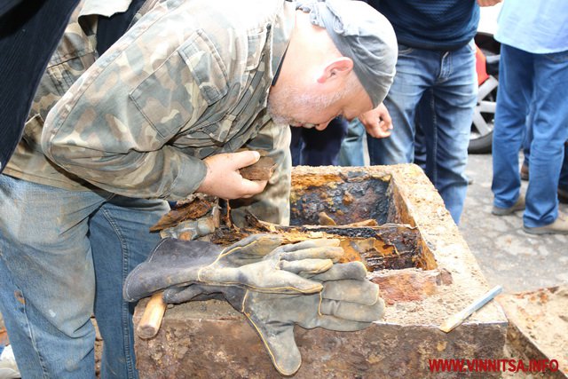 22 серпня в дворі Вінницького краєзнавчого музею відкрили таємничий сейф, який напередодні виявили під час прокладання теплотраси на вулиці Магістратській. Спочатку знахідку розчистили, а згодом і розібрали – без розшифровування трьох кодових замків.