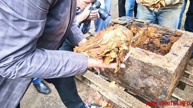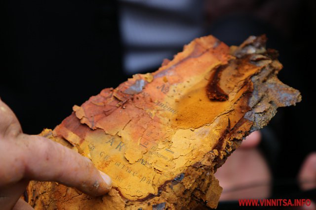 «Дві години ми його очищали і дивилися чи можна його відкрити звичайними методами. Сейф дуже проржавів, тому зрізали задню стінку і тоді виявили, що він наскрізь проржавів, волога проникла всередину. Документи фактично на 80-90 % просякнуті іржею. В середині ми знайшли виробничу документацію якогось підприємства.