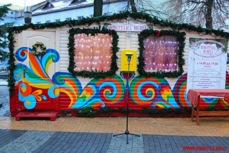 Протягом цього часу вінничани та гості міста зможуть відправити з пошти новорічну листівку із привітаннями своїм рідним, близьким і друзям. Проект реалізують у співпраці з «Укрпоштою», тому кожен відвідувач отримає один безкоштовний конверт і святкову марку.