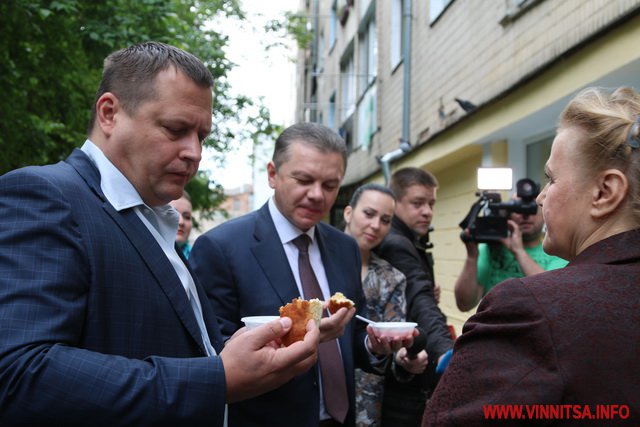 Гостинні господарі пригостили мерів Вінниці і Дніпра пиріжками та борщем, які готують для захисників на Схід.