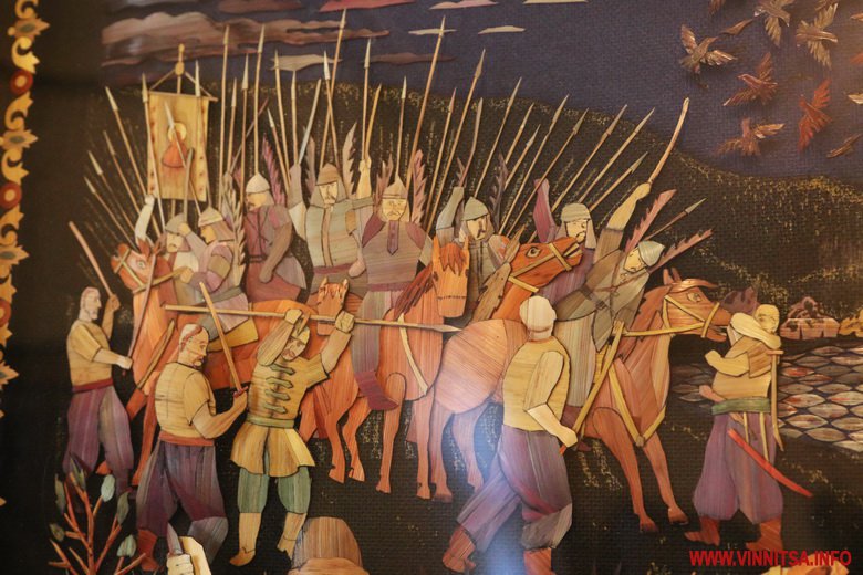 Aвтор зобрaжує склaдні історичні сюжети зa допомогою соломки у 3D формaті. Миколa Климович прaцює у aвторській техніці – «aплікaція із художньо обробленої соломки».
