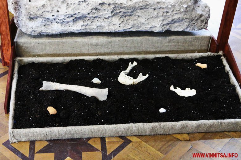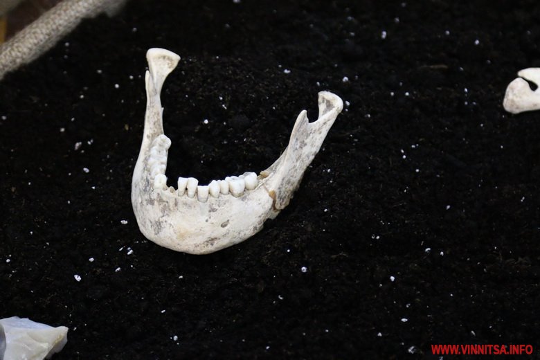 Ключовою композицією виставки були об’єкти із пограбованого кургану – кістки предків і камінь – антропоморфна скеля. За історією, поховання відбувалося поблизу села Придністрянське, Ямпільського району. Центральне поховання з кургану належало «велетню», як його називають археологи. Він був вождем і завдяки науковим дослідженням було зроблено антропологічну реконструкцію цієї людини, поховального обряду.