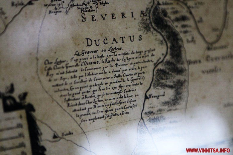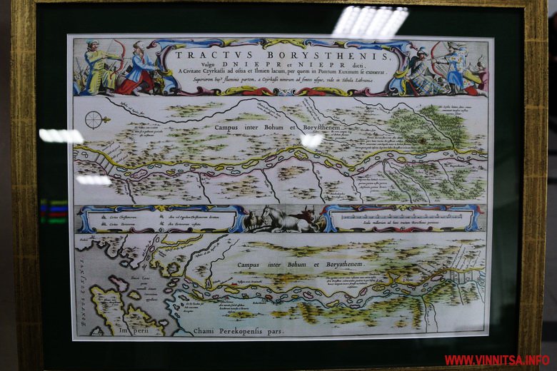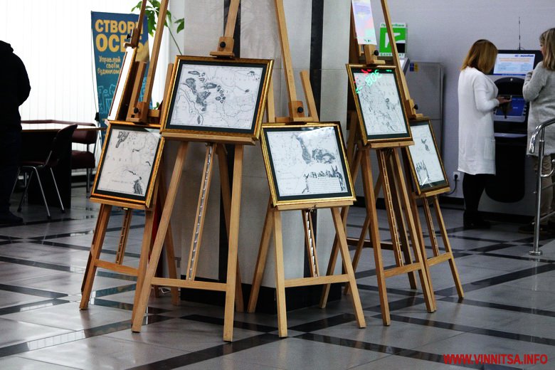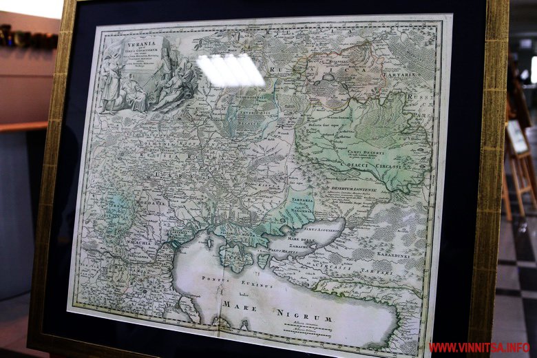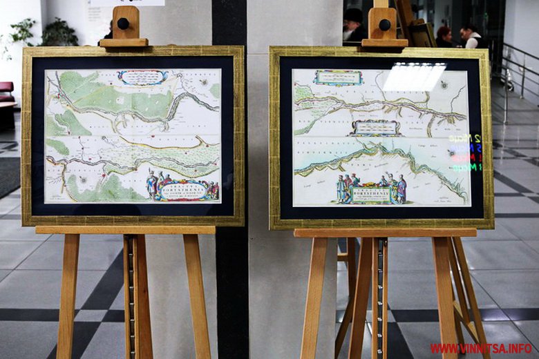 «У холі міської ради представлена виставка копій старовинних карт, на яких зображена територія України до XVIII століття. Раніше карти вирізали на дереві або випалювали на міді, це був дуже складний процес, тому фактично кожна карта була витвором мистецтва. Додатково дофарбовували акварелями чи іншими фарбами. Тут можна побачити копії дуже цікавих карт, наприклад, карта Птоломея, створена у другому столітті нашої ери, фактично нею користувались аж до XVII століття, частково до XVIII. Також варто відзначити карту Боплана, яка складається з вісьмох частин. Це перша в Європі середньорозмірна карта. Якщо подивитись на територію Поділля, то більшість населених пунктів, які зараз є маленькими селами, тоді мали замки. І навколо Вінниці є величезна кількість сіл, які позначені як замки. Такі речі дуже цікаві. Всі карти представлені тут в оригінальному розмірі», – автор колекції - керівник музею української марки міста Вінниці Олександр Білецький.