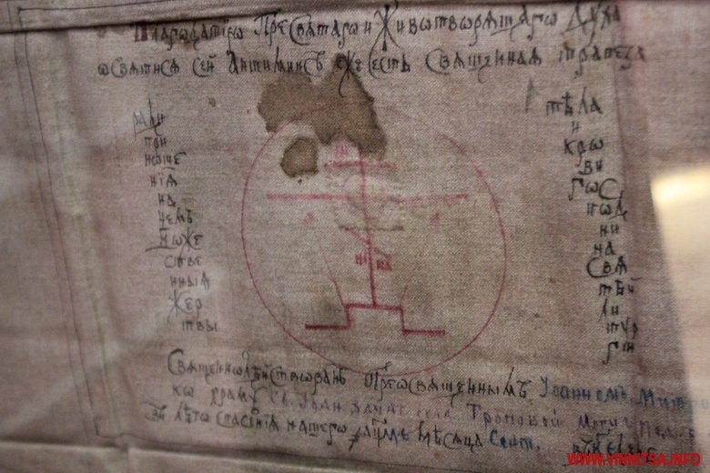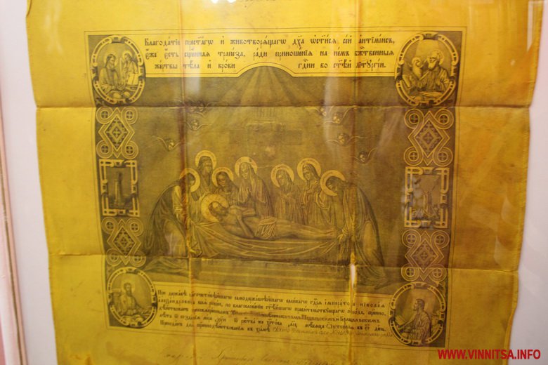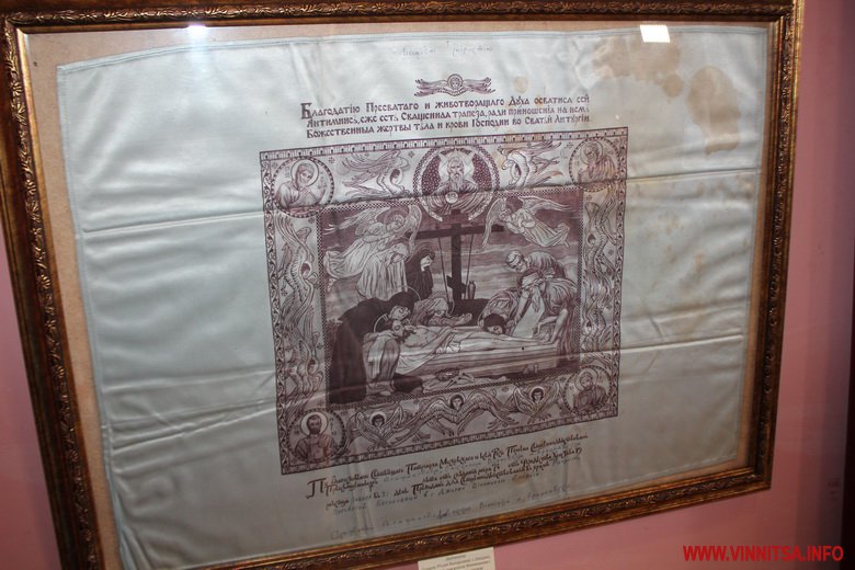Керівник історичного відділу Вінницької єпархії протоієрей Назарій Давидовський розповів, що окрім старовинних антимінсів, які створюють спеціально для кожного храму в музеї представлений сімейний експонат - фелонь протоієрея Валентина Давидовського. (Початок 20 століття).