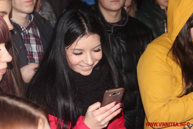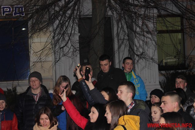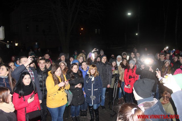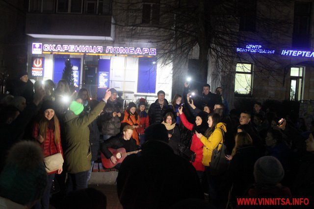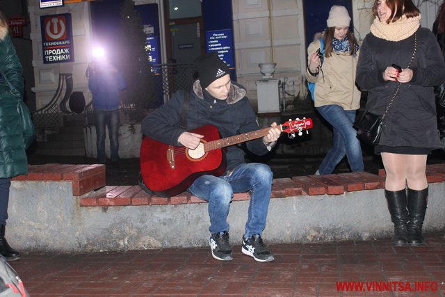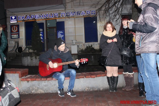 Близько сотні кумирів вінничан ввечері прийшли до Вежі та заспівали під гітару відомі пісні гурту "Скрябін", такі як «Мама», «Старі фотографії», «Спи собі сама», «Люди як кораблі», «Падай» та інші.