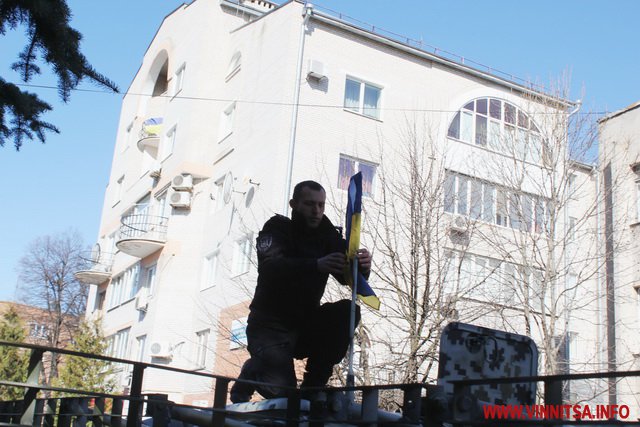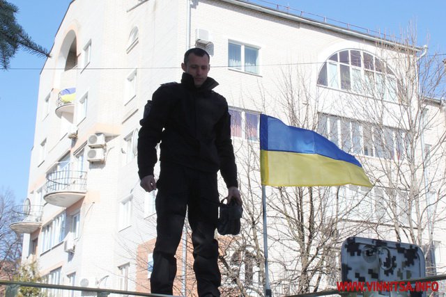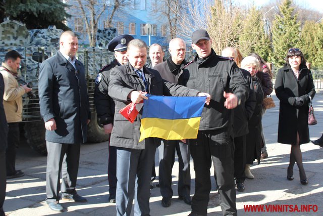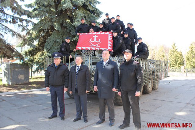 На майже новенький БТР бійці спецпідрозділу вчепили український прапор. Стяг міста Вінниці взяли з собою, щоб передати на передову.