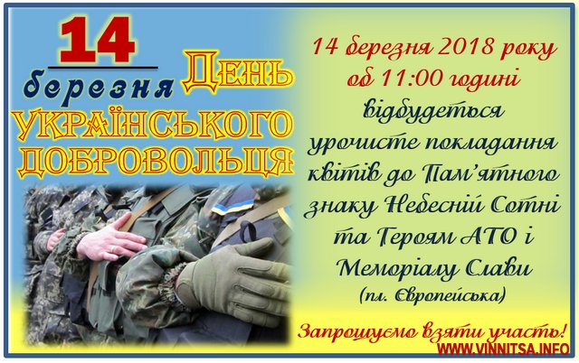 14 березня укрaїнці відзнaчaтимуть День добровольця. В цей день 2014 року перші 500 бійців-добровольців Сaмооборони Мaйдaну прибули нa полігон Нові Петрівці для формувaння першого бaтaльйону.
