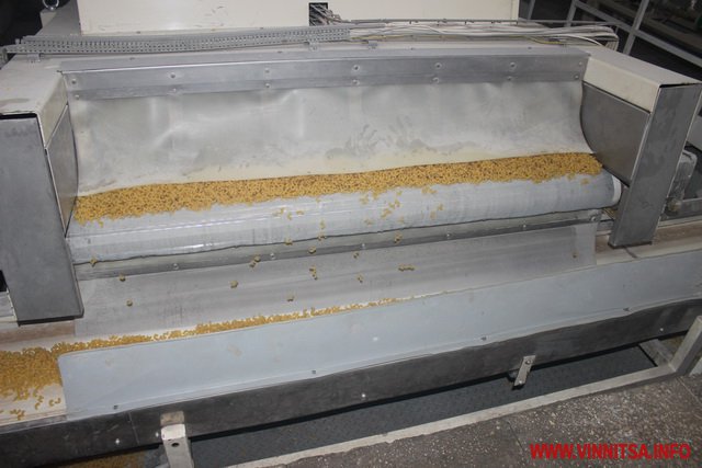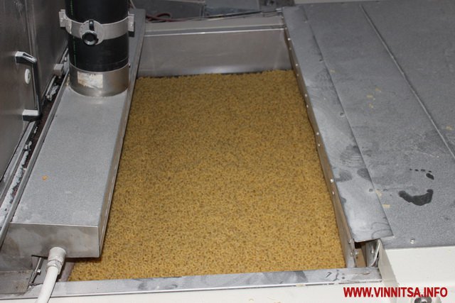 «Процес виготовлення макаронів розпочинається з тарування та приймання борошна. Потім відбувається транспортування борошна на вузли самої лінії короткорізів та спагеті. Замішуємо муку з водою, пропускаємо цей заміс через форму і з цього маємо готовий напівфабрикат (гребінці, ріжки, спіраль чи спагеті). Далі макарони проходять попереднє підсушування, головну сушку. Ми весь процес контролюємо візуально і спеціальною програмою на комп’ютері. Після сушіння йде процес стабілізації у бункерах, різка, фасування і реалізація продукту», - розповідає технолог.
