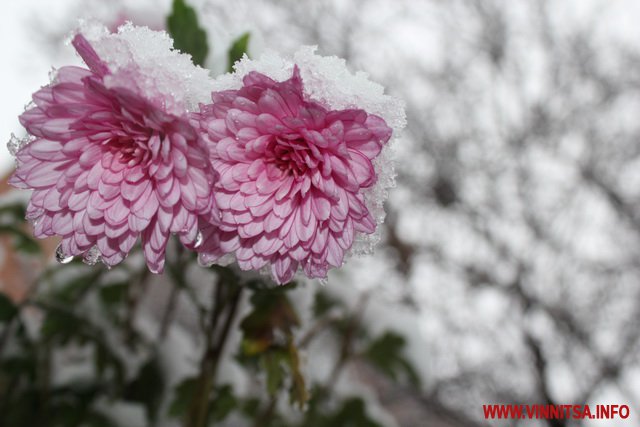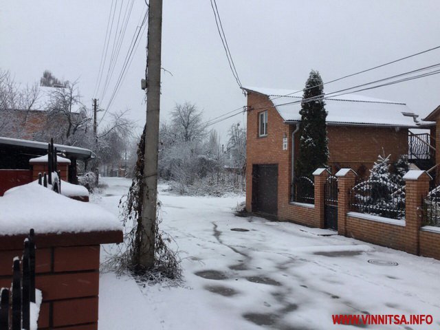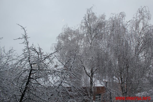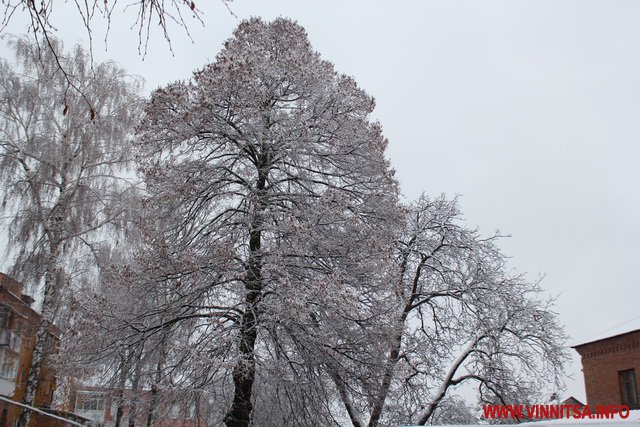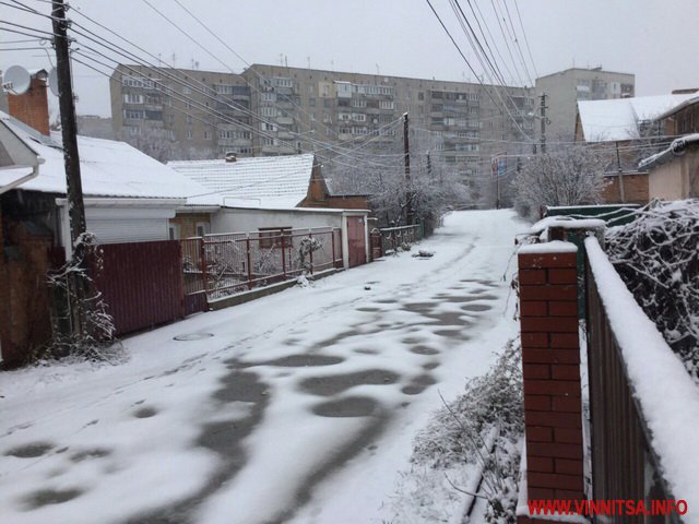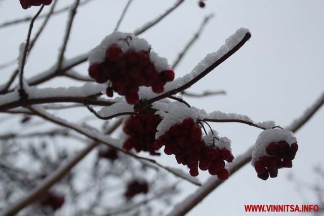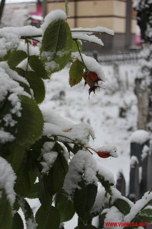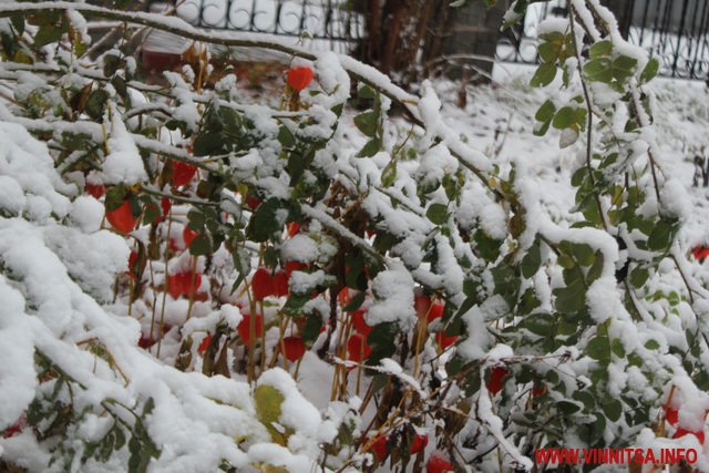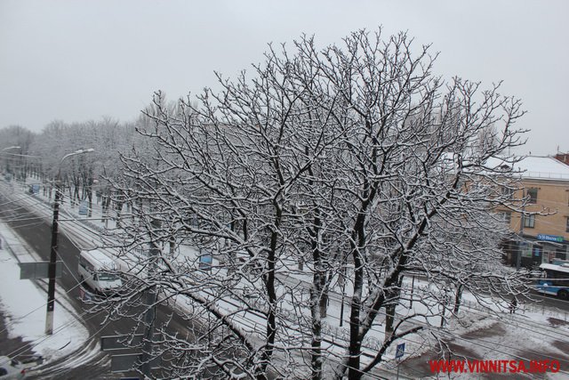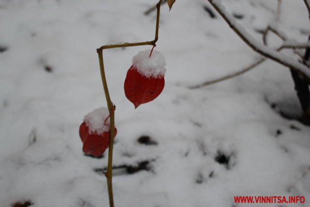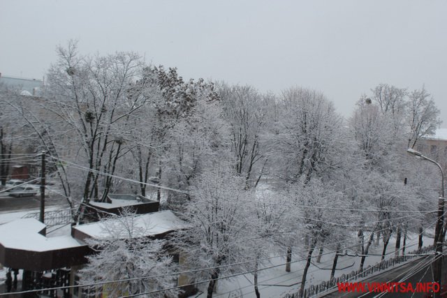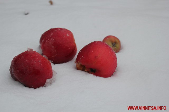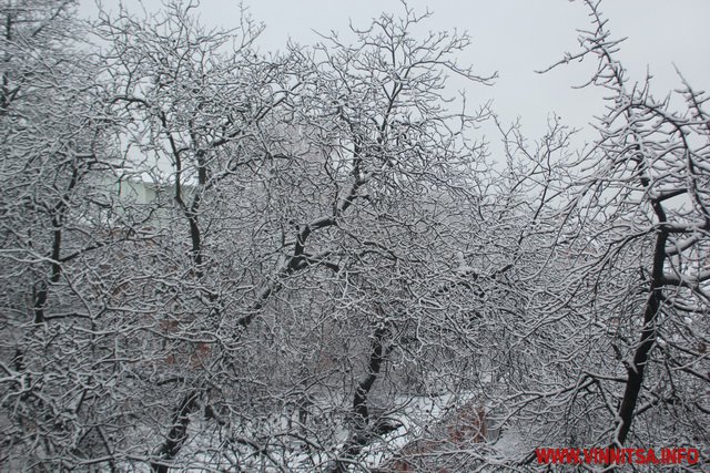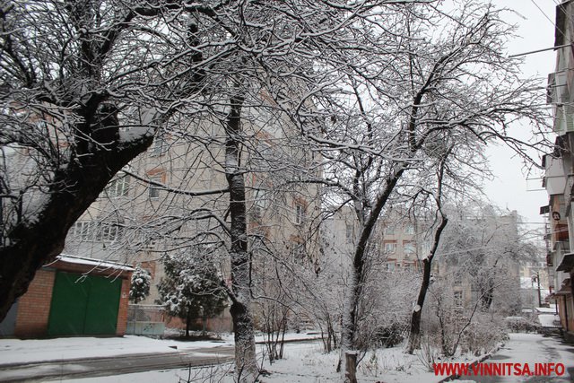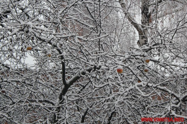 29 листопада, у переддень зими, Вінницю засніжило. Білі дерева, притрушені квіти і яблука, які від холоду самі падають на землю.. З неба сипле дрібний мокрий сніг, що одразу ж тане нід колесами автівок і кроками перехожих.