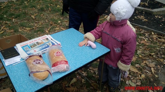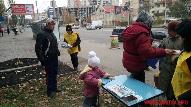 5 листопада у Вінниці на вулиці Київській віруючі люди з християнської церкви «Ранкова зірка» безкоштовно роздавали перехожим продукти харчування.