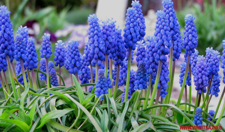 Ледь встигне розтанути сніг, вже з'являються квіти-первістки і серед них - ніжні мускари, що нагадують мініатюрні гіацинти. Період цвітіння в залежності від сорту і погодних умов починається з кінця березня до початку червня.