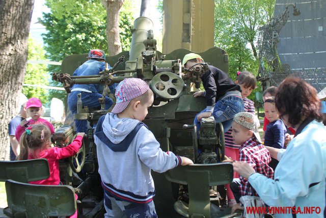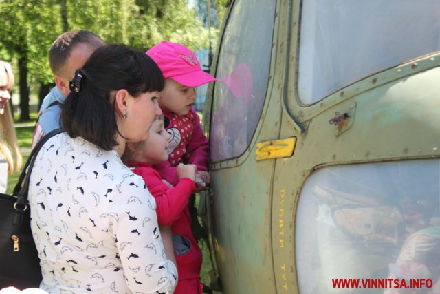 Сотні вінничан змогли зблизу роздивитися унікальні експонати: військову збройну техніку, літаки, гвинтокрили. Всі вони знаходяться на території під відкритим.