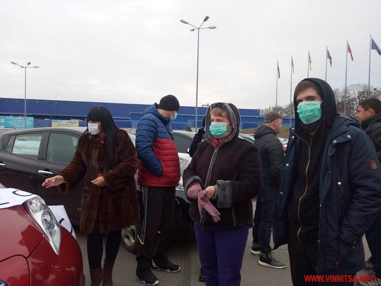 Аби продемонструвати, що електромобілі є екологічно чистим транспортом, учасники акції одягнули на обличчя медичні маски.