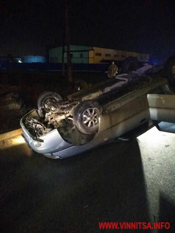 12 березня близько першої години ночі у Вінниці на вулиці Гонти перекинувся автомобіль «Део Ланос». Попередньо цей автомобіль спричинив ще одне ДТП тікаючи від патрульних. Водій та пасажир не постраждали.