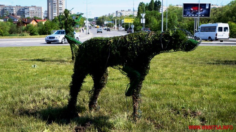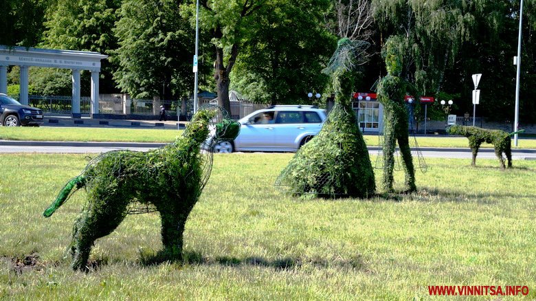 Вранці 18 травня у Вінниці, біля музею-садиби Пирогова, з’явилися оригінальні зелені скульптури. На перехресті двох вулиць, в кругу, розташували 6 фігур – велосипедист, музикант, двох собак, силует жінки і чоловіка. На проспекті Юності - ще кілька звірів.