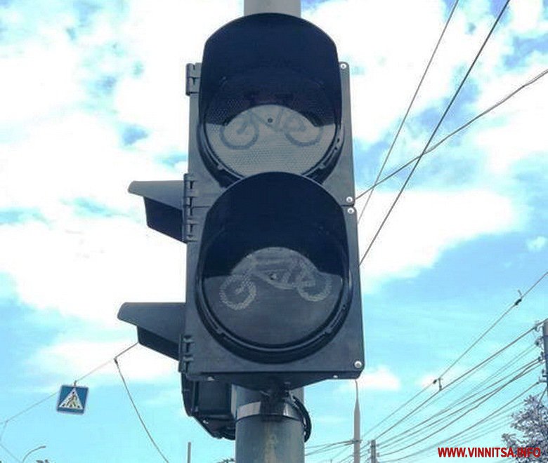 У Вінниці встановили перший світлофор, який регулюватиме рух велосипедів. Розташували його на перехресті вулиць Данила Галицького та Келецької. Там проходить велодоріжка.
