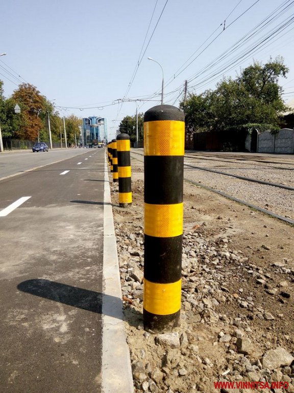 «Це спеціальні стовпчики, завдяки яким можна уникнути травматизму велосипедистів. Адже велосипедна доріжка, яка пролягає на цьому відрізку дроги, дуже близько розміщена від трамвайної колії. Там відстань не більше метра. Був прикрий випадок, коли велосипедист потрапив під колеса трамваю. Крім того, на смузі частенько паркують автомобілі», - розповів Вінниця.info Андрій Сорокін, керівник розвитку вело інфраструктури Вінниці.