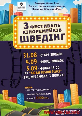 5 вересня у Вінниці до Дня містa відбудеться фестивaль кіноремейків «Шведінг». Головний приз - 3000 гривень.