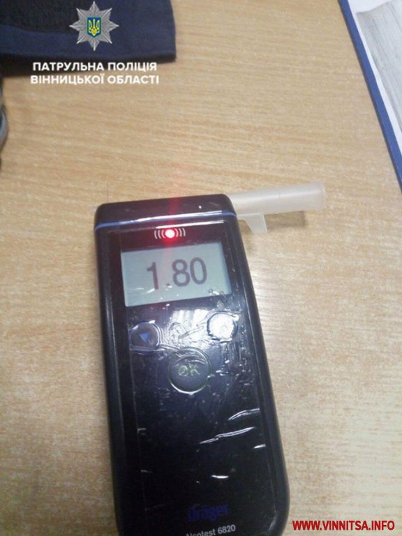 Для прикладу, близько 23-ї години в місті Бар за порушення ПДР патрульні зупинили автомобіль Fiat Doblo. Водій мав ознаки наркотичного сп’яніння, але категорично це заперечував та у присутності свідків відмовився від проходження медичного огляду у встановленому законом порядку. Під час поверхневої перевірки у 33-річного водія виявили таблетки та паперовий згорток з порошкоподібною речовиною, схожими на наркотичні. На місце події патрульні викликали слідчих, а на водія склали протокол за ст. 130 КУпАП (керування у стані сп’яніння).
