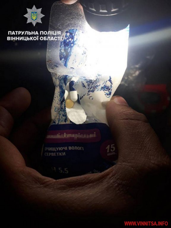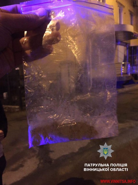 Схожий випадок стався у Вінниці близько 5-ї години ранку. Патрулюючи вулицю Пирогова, поліцейські зупинили автомобіль «ВАЗ 2110», який порушив ПДР. Спілкуючись з водієм, інспектори помітили в нього ознаки наркотичного сп’яніння. Керманичу запропонували пройти медичний огляд, але той відмовився у присутності свідків. Провівши поверхневу перевірку, патрульні виявили у чоловіка поліетиленовий пакет з речовиною, схожою на наркотичну.