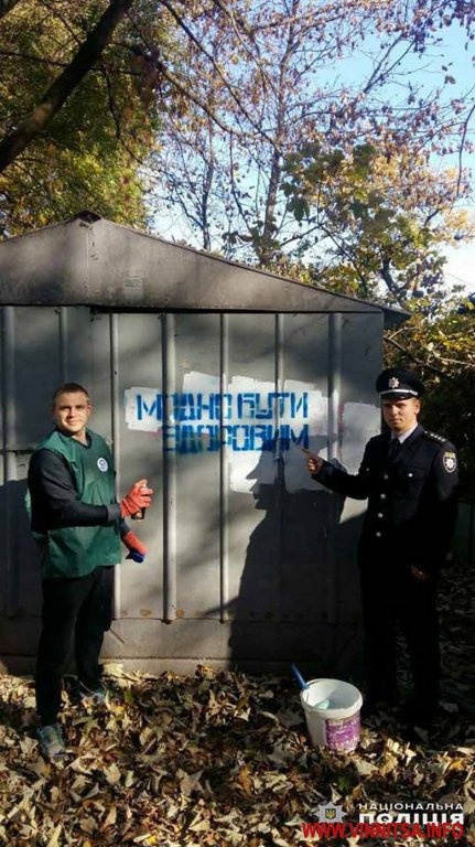 «Поліцейські Вінниччини прийняли активну участь у Всеукраїнській акції «Намалюй життя в любові - Україна». Поліцейські разом з представниками громадської організації «Пріоритет», зафарбовували рекламу наркотичних речовин, що розміщена на будівлях в м. Вінниці. Правоохоронці вийшли на вулиці міста, щоб підтримати ідею здорового життя без наркотиків», - йдеться в повідомленні на сайті поліції Вінниччини «Фейсбук».