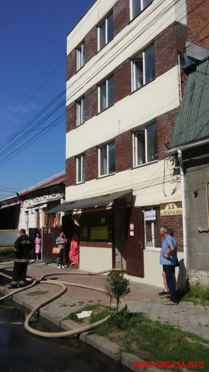 4 серпня о 15:21 до Служби порятунку «101» надійшло повідомлення про те, що на вул. Некрасова у м. Вінниці на другому поверсі чотирьох поверхової будівлі горить офісне приміщення.