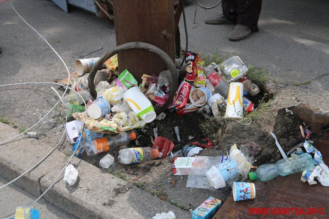 Не зважаючи на те, що в центрі міста через кожні 10 метрів встановлені урни, люди вмудряються робити смітники в електроопорах.