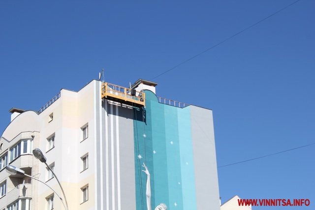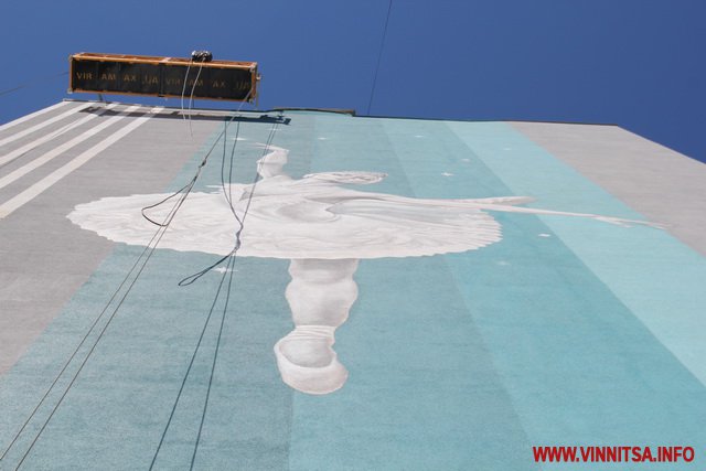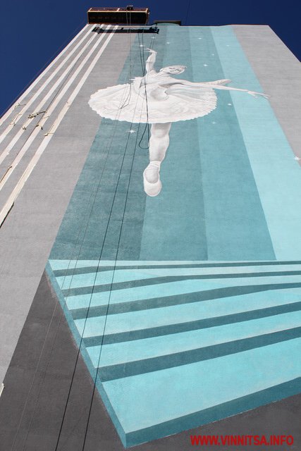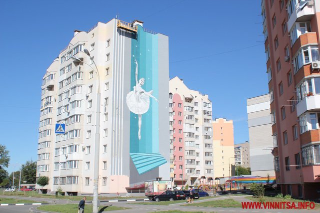 У Вiнницi на вулицi Келецькiй, 138 завершили мурал в рамках проекту «VIN ART CITY». На фасадi одинадцятиповерхового будинку вже красується балерина. Заднiй план митцi вирiшили трохи змiнити.
