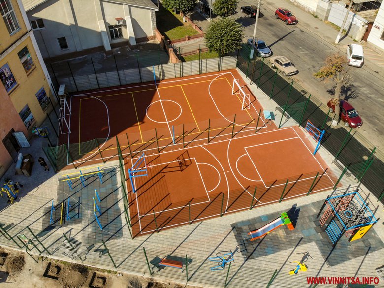 Новий навчальний рік школярі зустрінуть з новим спортивним майданчиком, де можна займатись міні-футболом, баскетболом, волейболом, гандболом, тенісом тощо.