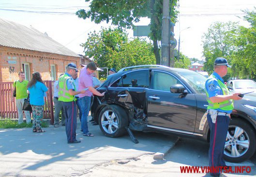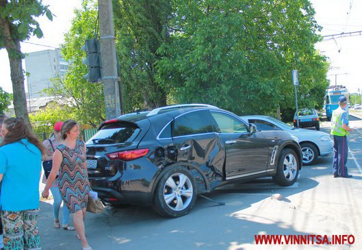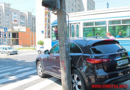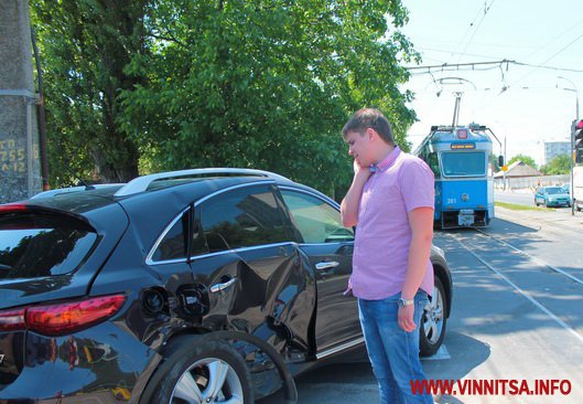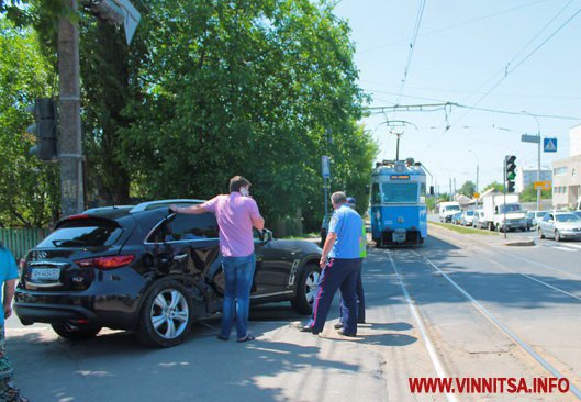 10 червня в обід у Вінниці на перехресті вулиць Келецької - 40-річчя Перемоги трапилася дорожньо-транспортна пригода за участі трамвая та машини марки Infinity.