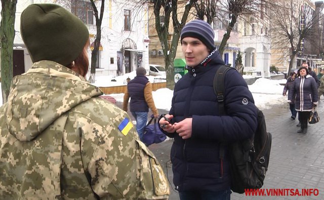 7 березня у Вінниці жінки-військовослужбовці провели незвичну акцію. У центрі міста особисто запрошували перехожих призовного віку прийти до військкоматів. До такого креативного кроку дійшли через те, що кількість бажаючих служити в армії з кожним роком зменшується. Тому жінки у формі наважилися особисто подивитися в очі тих, хто думає «відкосити».