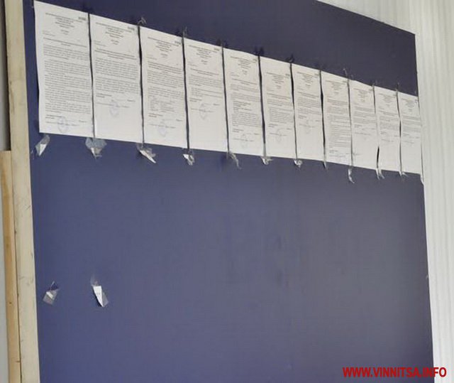 «Зранку вивішали копії постанов про затвердження кандидатів у депутати до Вінницької обласної ради і о 12:25 виявили, що їх повністю хтось зірвав зі стенду», - прокоментував ситуацію Роман Журавель.