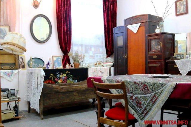 Кімната відтворює єврейське помешкання. В одному приміщенні об’єднано кілька типів експозицій: предмети юдаїки, старовинні меблі та кухонне начиння кінця XIX – початку XX століття. Усі мають свою історію. Меблі з мідними ручками та різьбою у вигляді орнаментів або квітів раніше стояли у єврейських оселях, як і срібні та мідні підсвічники. Знаряддя ремісників працювало у вправних руках професіоналів, книги та молитовники були перечитані десятки разів. Увагу привертає вишукане трюмо. Наглядач музею, Людмила Войтенко розповіла Вінниця.info, що до Вінниці його привезли з Бару. У повоєнні роки колишні власники не проміняли його на велику суму грошей.