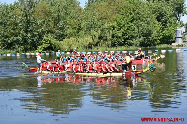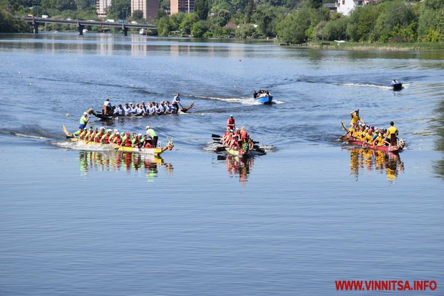 До самого вечора спортсмени змагатимуться на 20-тимісних каное, прикрашених головою та хвостом дракона. Такий турнір для Вінниці – новинка.