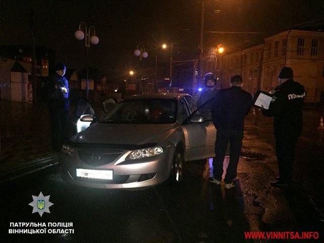 В ніч з 2 на 3 січня, близько 2-ї години, на вулиці Брацлавській патрульні побачили автомобіль Mazda 6, який маневрував з порушенням правил дорожнього руху. Інспектори подали водієві сигнал про зупинку.