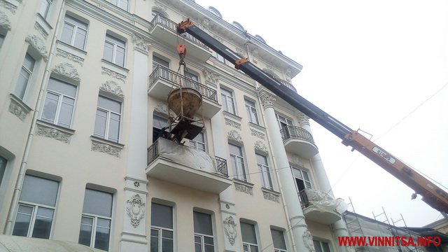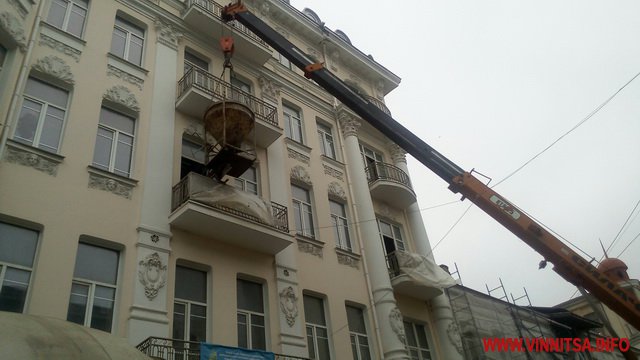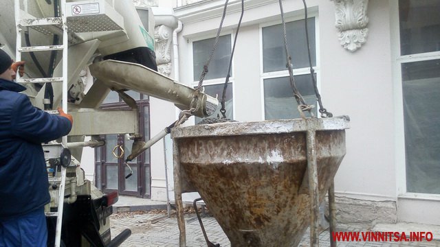 Близько опівдня 24 листопада у вінницькій столітній готель «Савой», пам’ятку-архітектури, робітники розвантажують готовий бетонний розчин.
