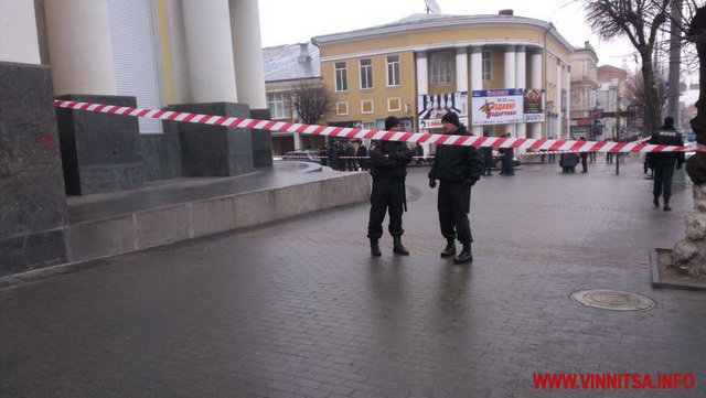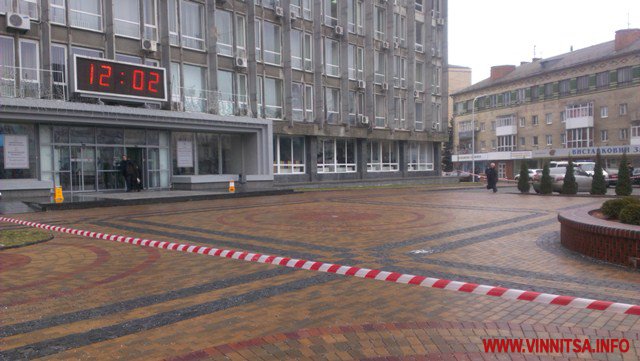 Як розповів начальник Вінницького міського відділу міліції Юрій Куций, о 12.05 за телефоном «102» до чергового зателефонував секретар головиОДА та сповістив, що щойно до них зателефонував незнайомий чоловік таповідомив вибуховий пристрій у приміщенні облдержадміністрації. Наразі ведеться робота по обстеженню обох приміщень на наявність вибухонебезпечних предметів.