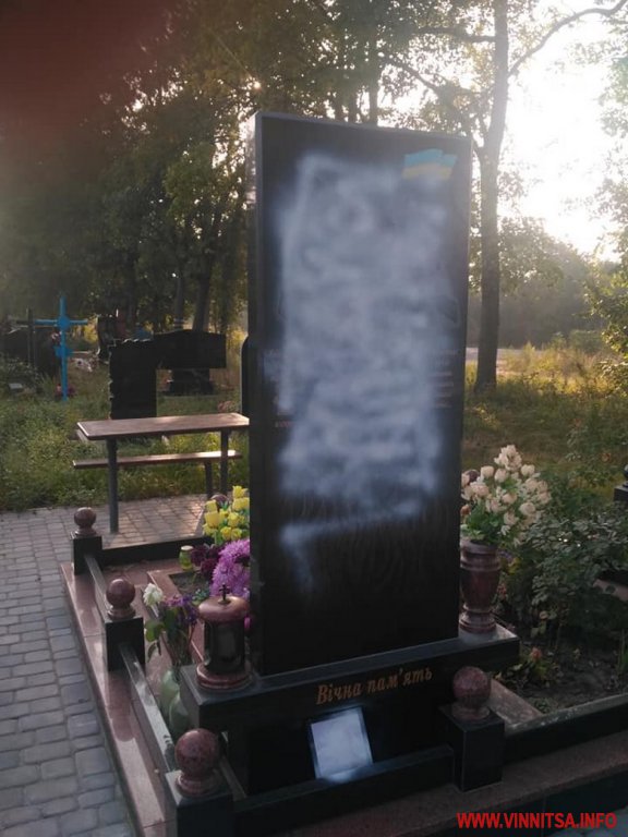 3 вересня на кладовищі с. Будків Хмільницького району невідома особа пошкодила два пам’ятника. Один з монументів встановлений на могилі загиблого в боях біля Луганського аеропорту Серія Муравського. Поліція просить небайдужих допомогти з розшуком зловмисників.