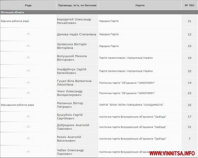 На Вінниччині з балотування на місцевих виборах вибули 12 кандидатів. Причина вибуття кандидатів не вказана.