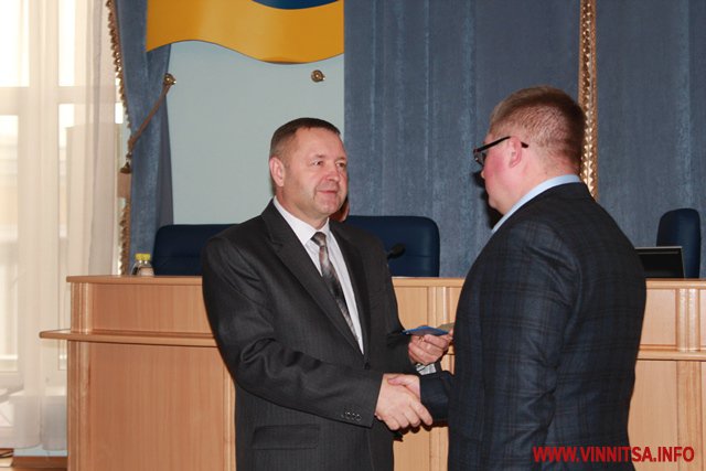 На початку засідання було представлено нового депутата вінницької обласної ради - Дмитра Рихліцького, якого обрано за спискоми партії «Фронт змін» замість Сергія Кудлаєнка, що цьогоріч під час Парламентських виборів пройшов до Верховної Ради за списком «Блоку Петра Порошенка».