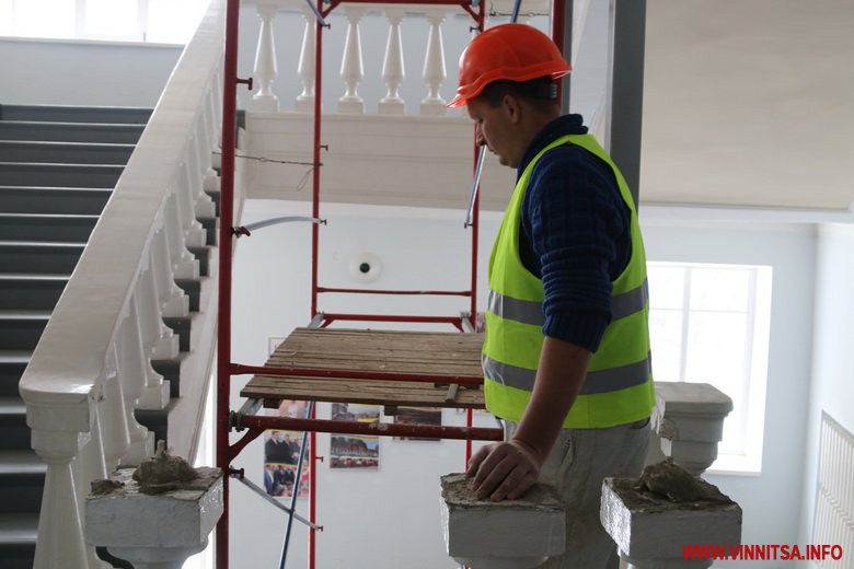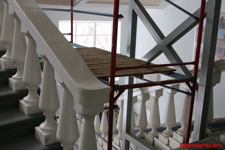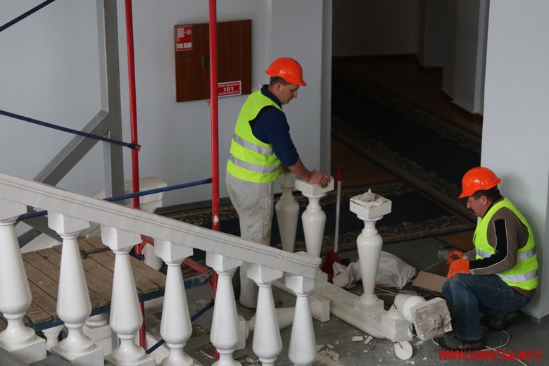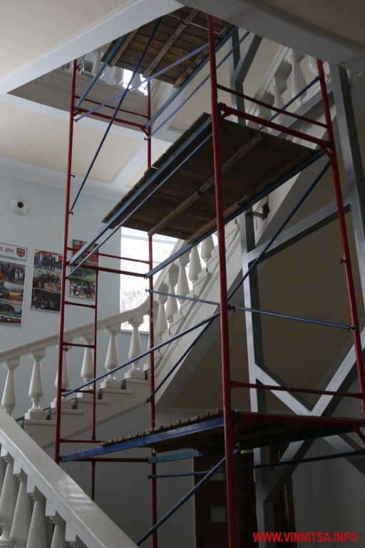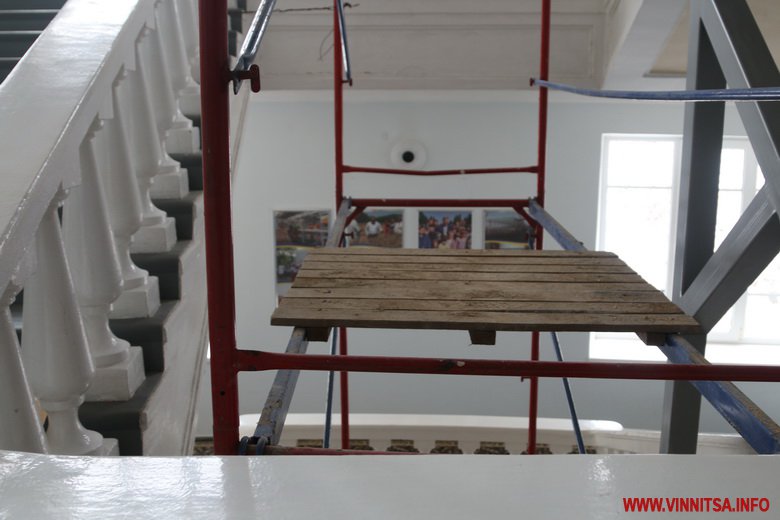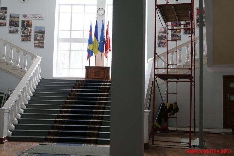 У будівлі Вінницької обласної ради і адміністрації, що на Соборній, 70, встановлюють ліфт. Частину перил демонтують, аби облаштувати вхід і вихід з підйомника на поверхи. Ліфт буде зі скляними дверцями, як в будівлі «Савою».