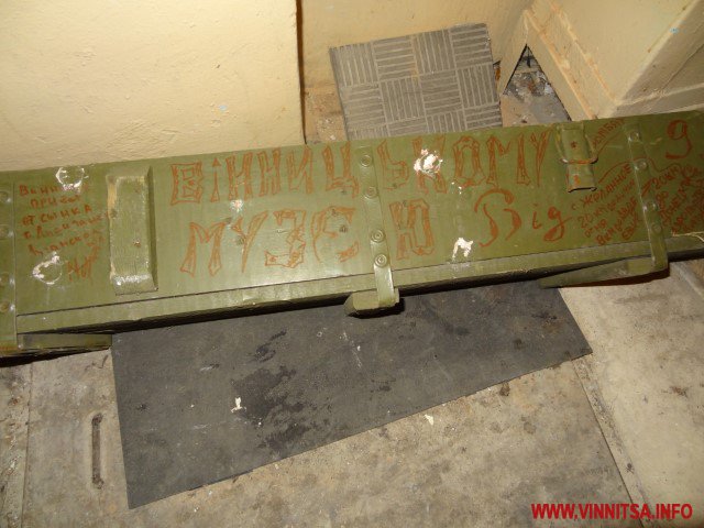 Це вже не перший сувенір, переданий вінничанам від земляків із зони АТО. Протягом останнього часу бійцями було надіслано фрагмент від реактивного снаряду БМ-21 «Град», гільзи від набоїв різного калібру, учбова протипіхотна міна, прострелений захисний шолом, фрагменти від РСЗВ «Ураган» та ПТУР «Конкурс». Всі отримані речі вже передано до музею.