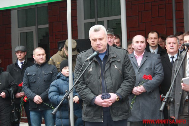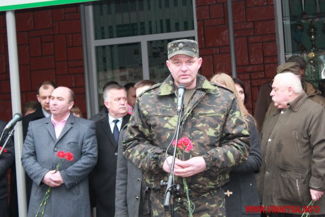 На відкриття меморіальної дошки завітав підполковник Віталій Шум, заступник командира частини 3008 по роботі з особовим складом.