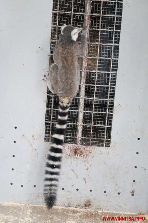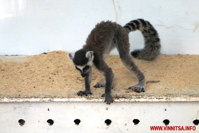 Сірий лемур має хвіст довжиною 50-60 сантиметрів із чорно-білими смужками (традиційно їх 13). Сьогодні тварина на карантині – знаходиться окремо від інших – у зимівнику, де завжди підтримують температур плюс 15 градусів.