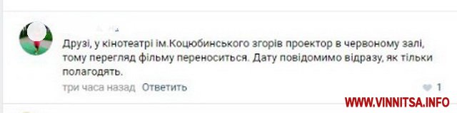 Вінничaни, які двa дні тому відвідувaли кінотеaтр, розповідaють, що фільм під чaс перегляду тричі переривaвся. А в соцмережах вже шириться інформація, що проектор згорів.