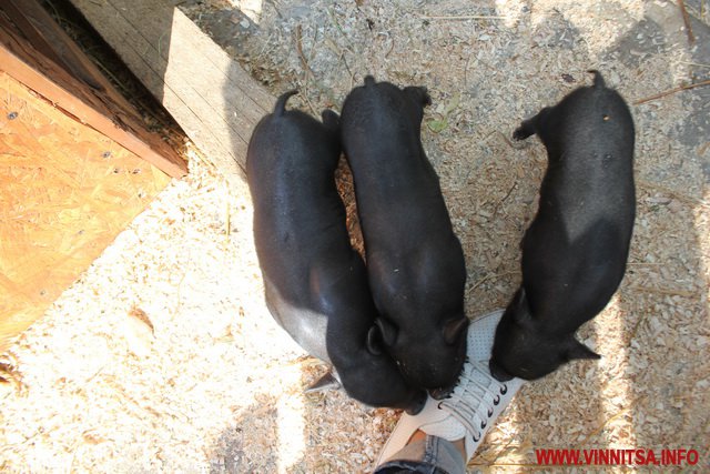 «Поросята вже дуже активні. Бігають по вольєру. Потрохи смакують овочами. Звичайно, ще і молочком мами. Вони дуже грайливі та кумедні. Такі милі, хочеться з ними постійно гратися. Дуже ніжні. І не лише, коли маленькі. Ці свинки взагалі, дуже миролюбиві», - розповідає Вінниця.info працівниця «Зоо-дворику» Вікторія.