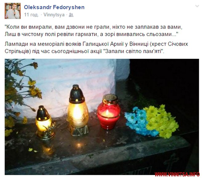 Акція отримала назву «Запали вогник пам'яті». Ліхтарики серед осіннього листя палахкотіли до самого ранку.