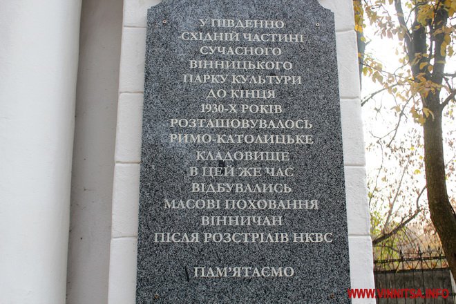 1 листопада вінничани вшанували пам'ять жертв радянського режиму. У Центральному парку, де раніше знаходилося римо-католицька кладовище, запалили лампадки. До меморіалу ставили квіти.