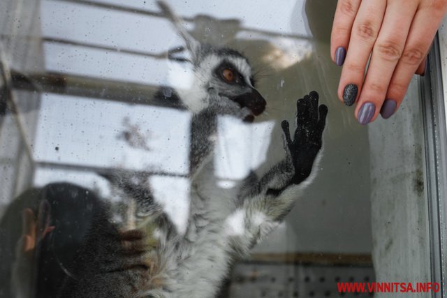 Вже підросли двоє мавпенят, що з’явилися на світ ще в жовтні. Новоселець лемур з цікавістю підходить до скла своєї клітки.
