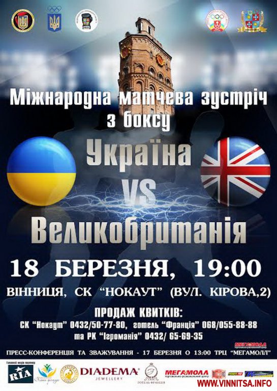 18 березня у Вінниці відбудеться міжнародна матчева зустріч між національною збірною України та збірною Великобританії. Боксери зустрінуться на ринзі СК «Нокаут».